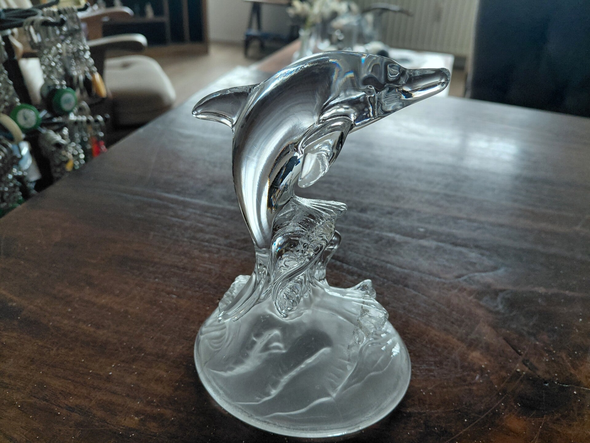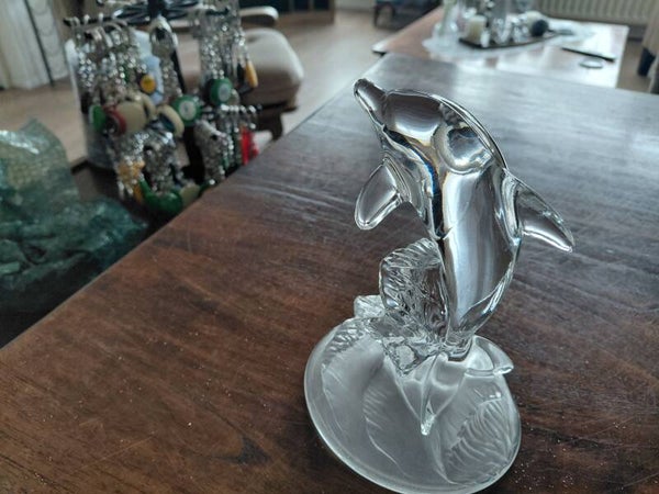 Massief glazen dolfijn op massief glazen voet